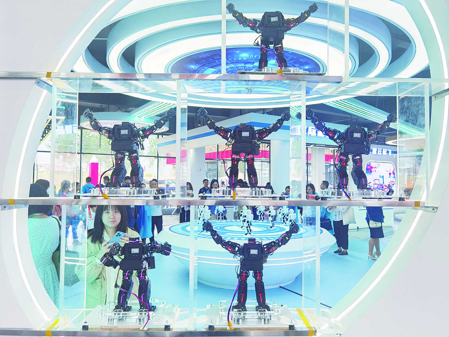 在郴州恒佳科创研学基地未来馆,孩子们被机器人吸引,共同起舞。周卫国 摄
