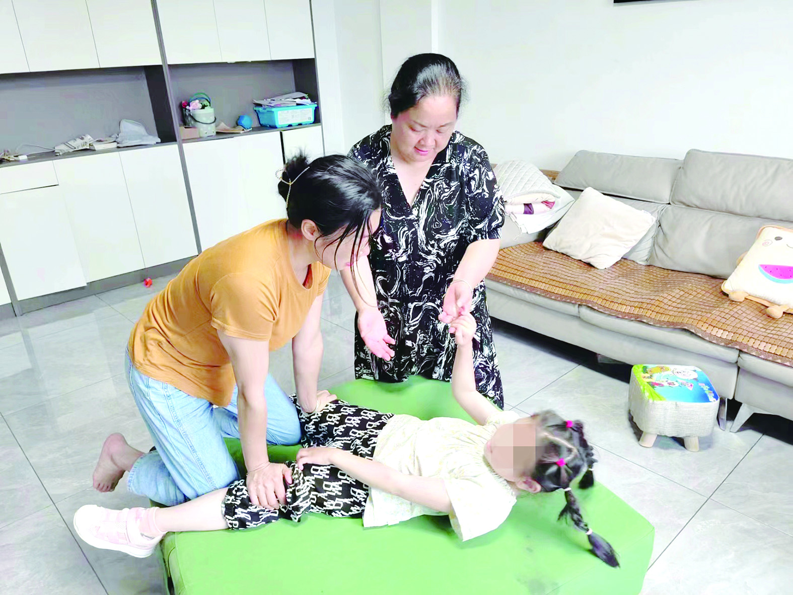 攸县特殊教育学校的老师,上门为孩子进行康复训练。