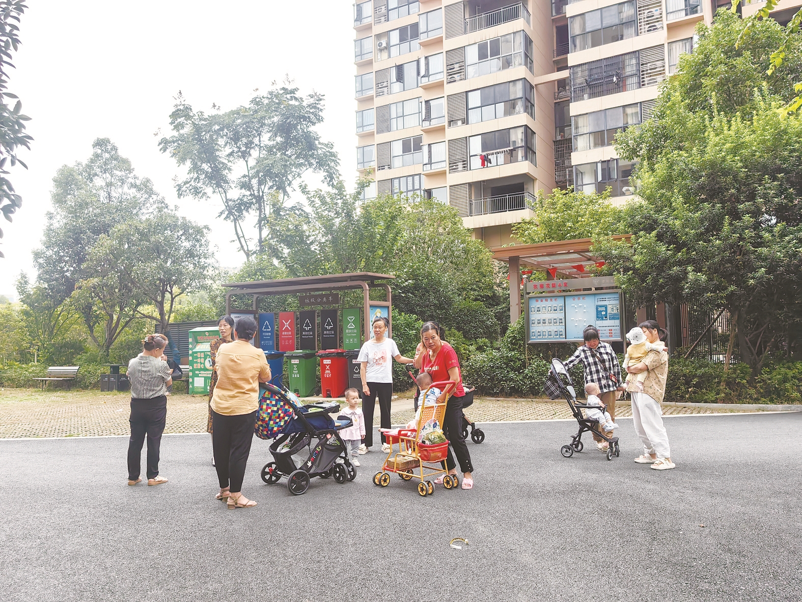小区环境变好后,业主纷纷下楼遛娃。 记者/旷昆红 摄
