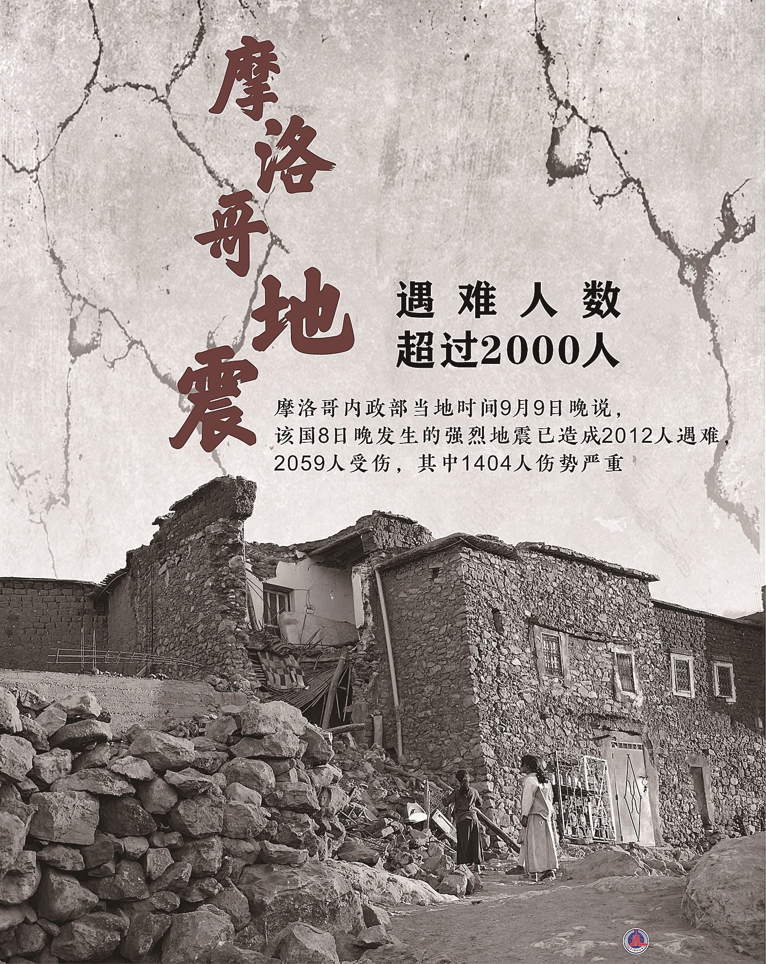 摩洛哥内政部当地时间9月9日晚说,该国8日晚发生的强烈地震已造成2012人遇难,2059人受伤,其中1404人伤势严重。记者从中国红十字会总会了解到,中国红十字会决定向摩洛哥红新月会提供20万美元紧急人道主义现汇援助,支持其开展救援救灾工作。
