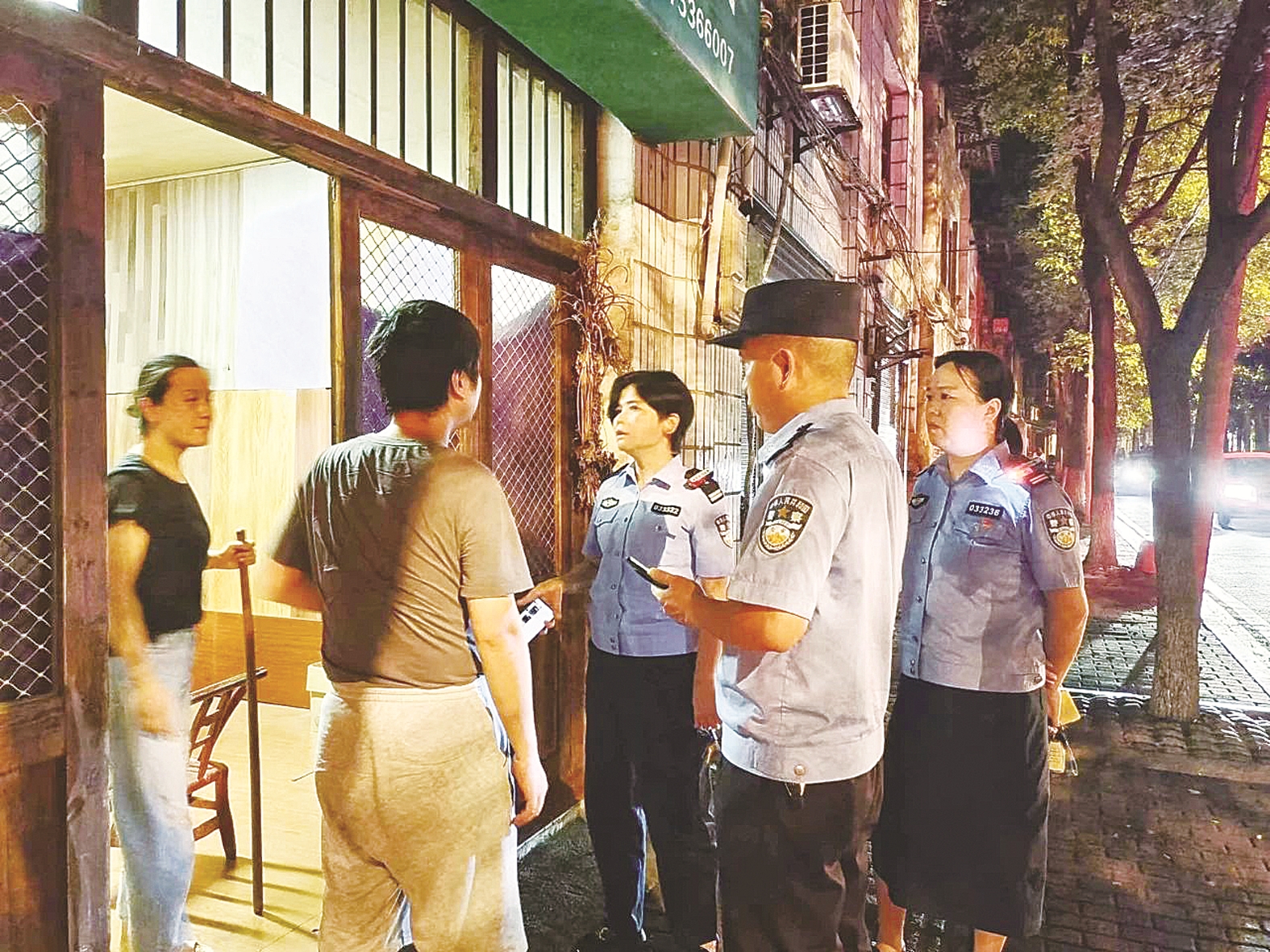 此次“百日行动”设置了10余个查缉卡点,加大对可疑人员、车辆、物品的盘查检查;着重部署对广场、商圈、夜市、车站、“炒粉街”等夜间人员密集场所的巡查,针对城中村、城郊结合部等易滋生违法犯罪的死角盲区,持续开展“见警察、见警灯、见警车”巡逻行动;对重点场所开展“突击式”“地毯式”集中清查检查,查处一批违法违规经营行业场所,及时消除各类风险隐患。图为民警正在进行夜间巡查走访。