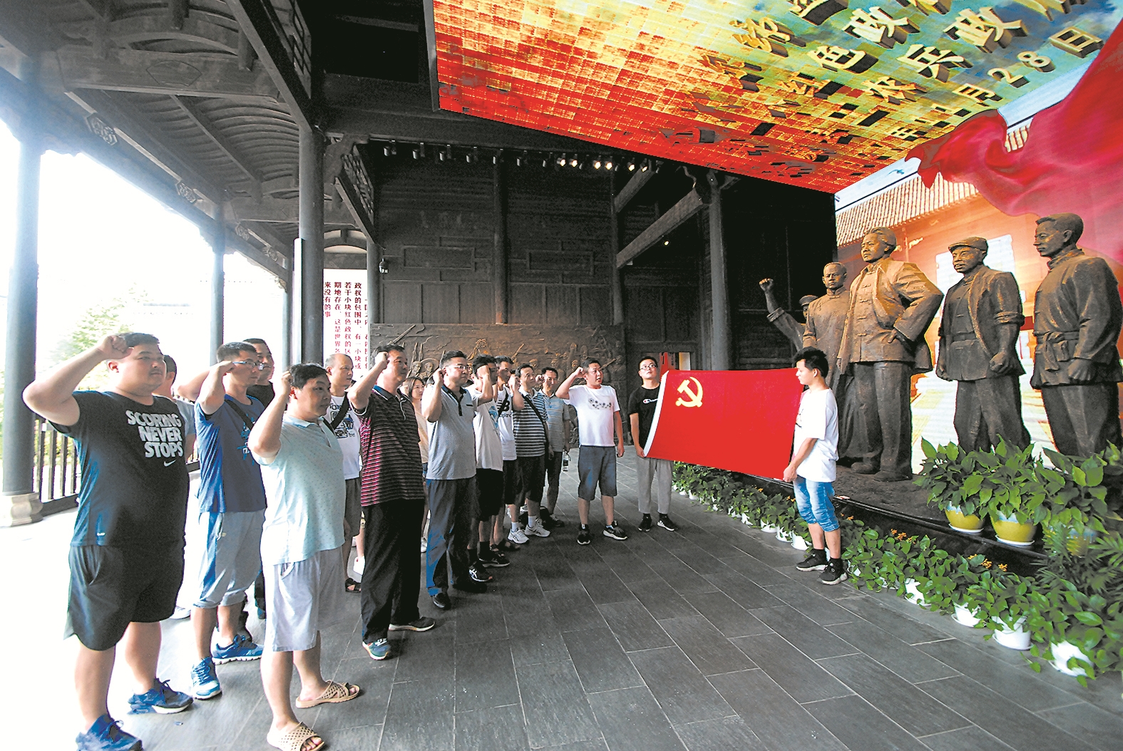 游客在茶陵县工农兵政府旧址宣誓。张东升 摄