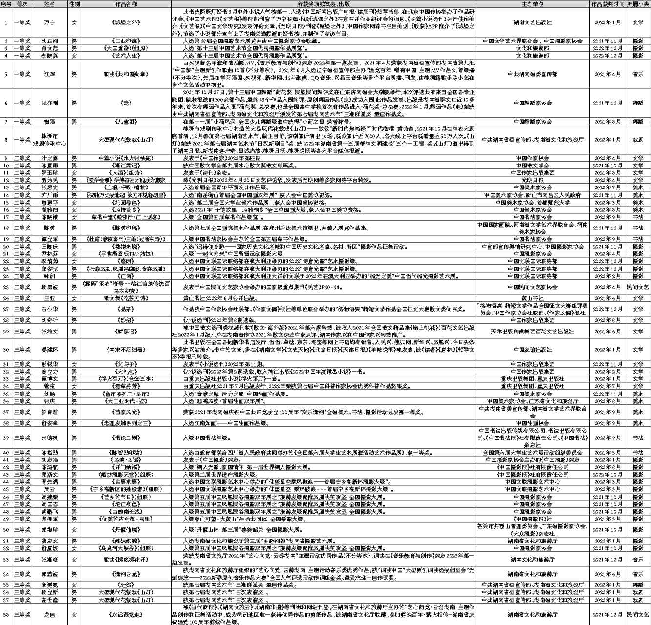 株洲市第九届“炎帝文艺奖”评奖结果 (按类别、等次、姓氏笔划排序)
