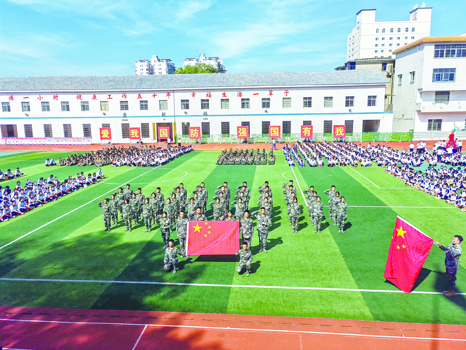 9月18日,我市2023年“全民国防教育月”活动暨国防教育进校园活动在市一中启动。活动以“踔厉奋发强国防 勇毅前行向复兴”为主题。现场,湖南汽车工程职业学院军士教育学院国旗护卫队举行升旗仪式,市一中学生进行军事技能展演,市二中附小学生表演歌舞《心有强国梦》,省“最美退役军人”刘欲求讲述《烽火中的信念》。