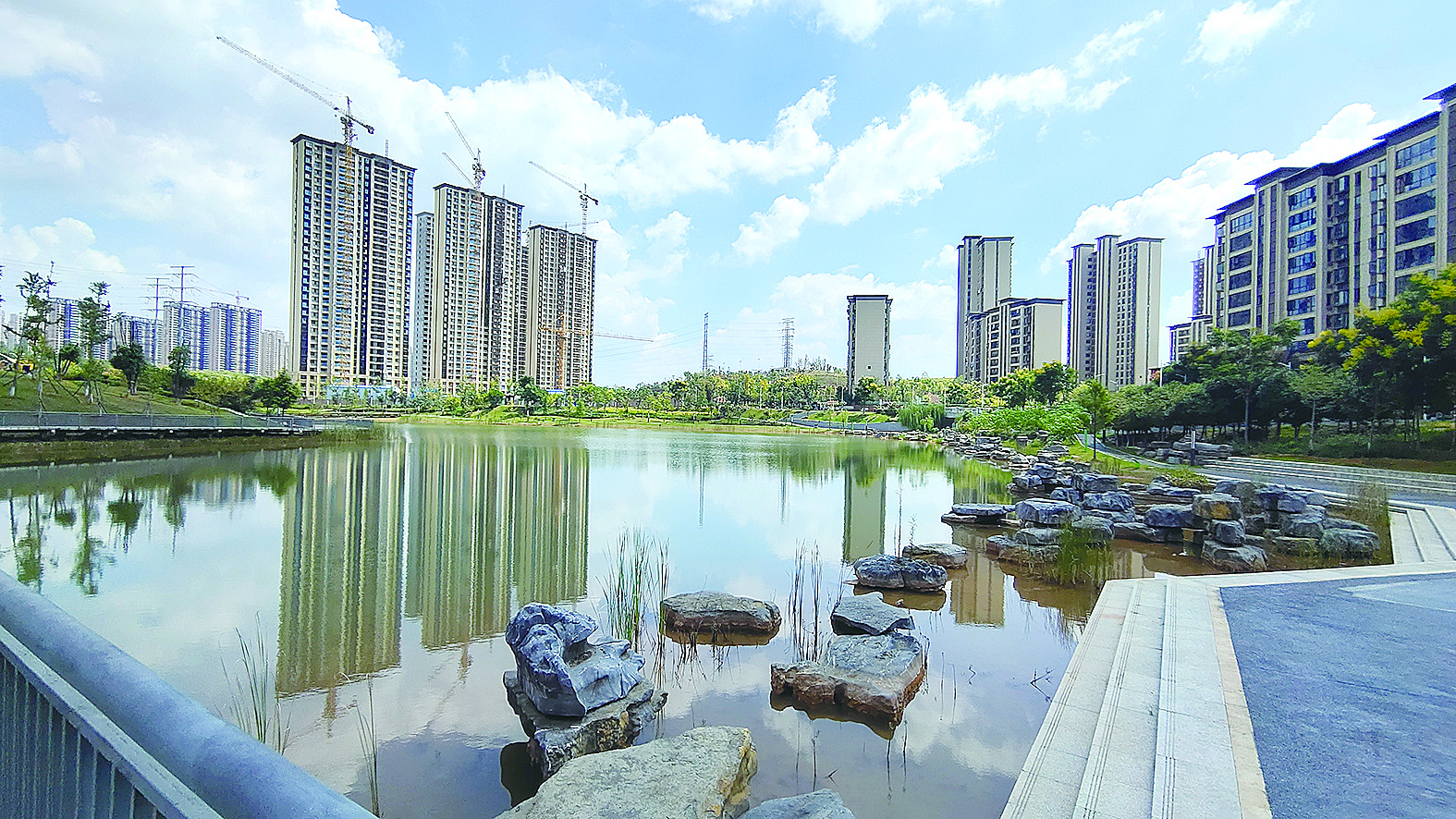 湖景房、学区房、高铁站多重优势加持下,类似绿地株洲城际空间站的楼盘前景乐观。 记者/徐滔 摄