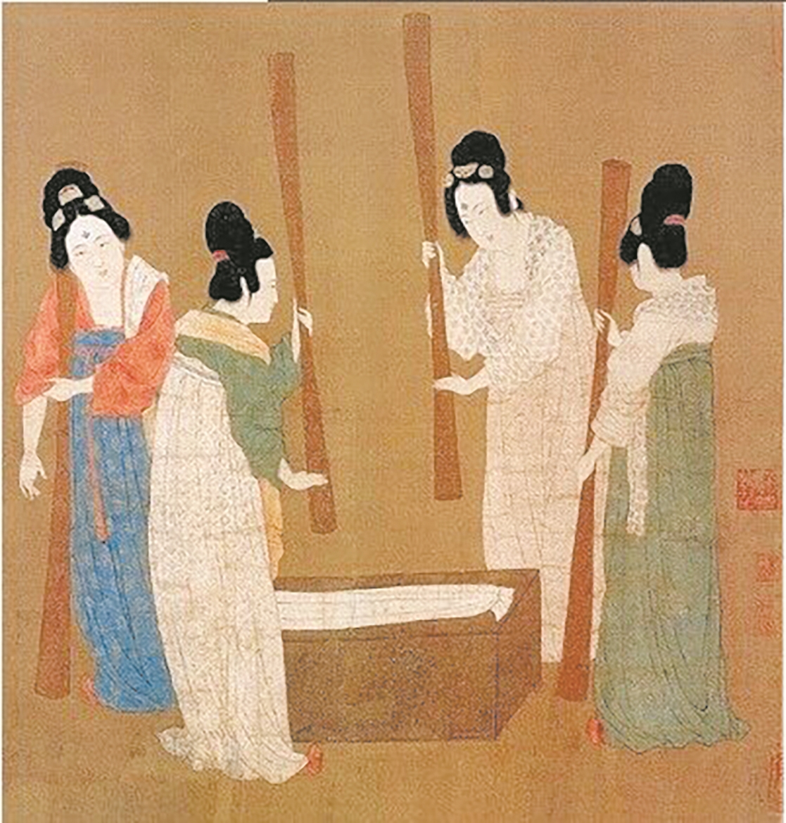 月下捣衣,在诗词中常常代表着思念。在各种天然纤维中,物美价廉者当数棉线。棉花原产于印度,大约南北朝时期开始传入中国,但只在新疆等边远地区种植,真正传入中原并大量种植应用要到宋末元初。在这之前,中国人穿的织物,不是丝的,就是葛麻的。丝绸制品品种极多,但无论哪种都很昂贵,平民百姓所着基本都是葛麻制品。葛麻结实便宜,但是非常粗硬,穿着很不舒适,在穿之前,必须经过反复锤打,这就是“捣衣”。