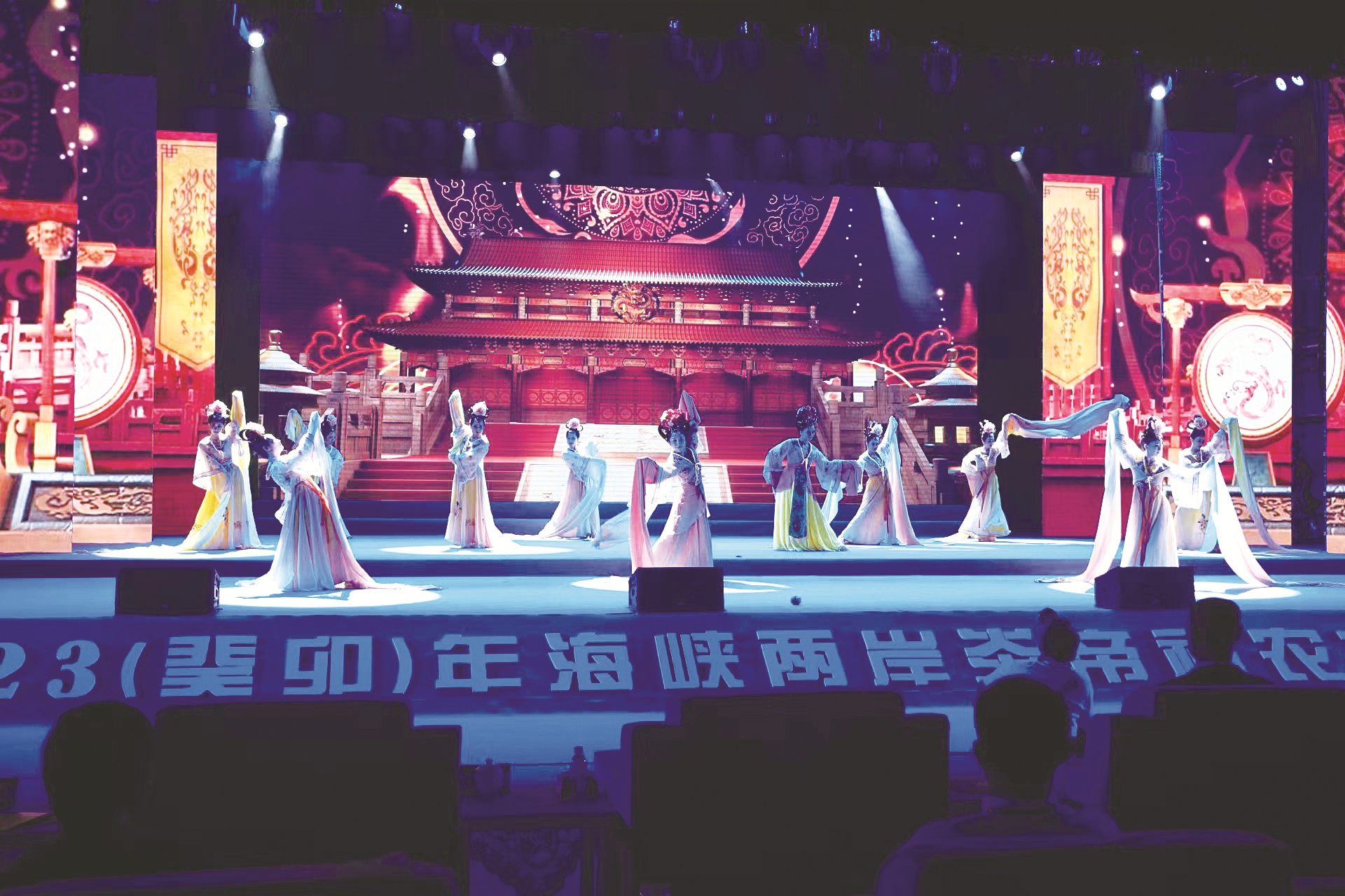 演出开场,以炎帝故事为题材的舞蹈《缘起》,通过情景表演的形式,讲述了中华始祖炎帝的“八大功绩”,带领两岸观众开启了一场沉浸式梦回千年的寻根之旅。而后上演的情景表演《观变》、舞蹈《霓裳》展现了中华传统文化;情景歌舞《我的嫁妆是山歌》则向台湾同胞热情推介起了炎陵客家文化。