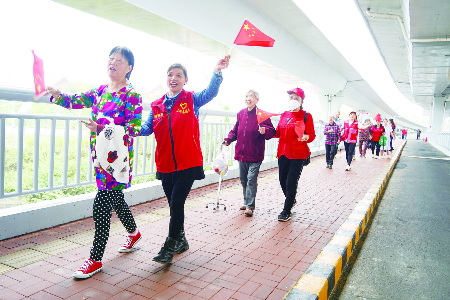 9月27日,“情暖中秋迎国庆 携老同行观新桥”活动举行。活动由株洲日报社和株洲晚报志愿者联合会主办,在志愿者的帮助下,敬老院老人高兴地游览刚竣工的株洲清水塘大桥,爱心机构为老人们发放月饼。 株洲日报全媒体记者/刘震 摄