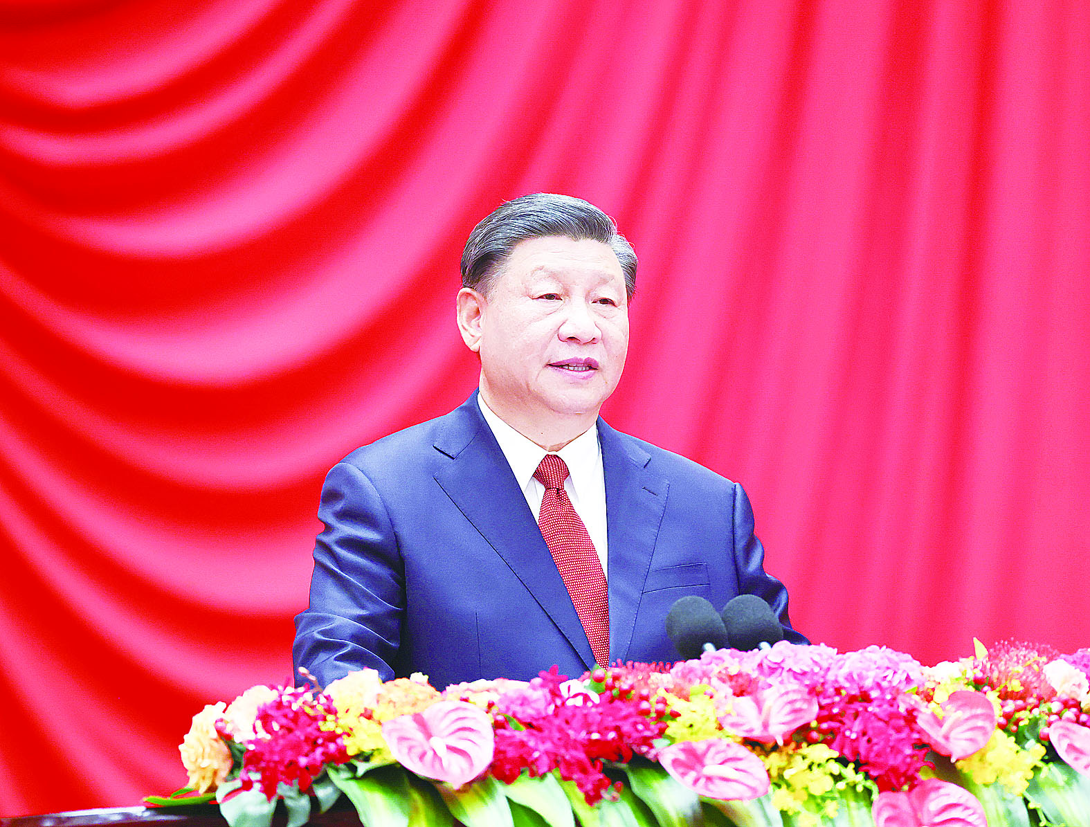习近平发表重要讲话。他首先代表党中央、国务院,向全国各族人民,向中国人民解放军指战员和武警部队官兵,向各民主党派和无党派人士,致以崇高的敬意;向香港特别行政区同胞、澳门特别行政区同胞、台湾同胞和海外侨胞,致以诚挚的问候;向关心和支持中国现代化建设的友好国家和国际友人,致以衷心的感谢。