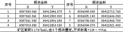 2.5采矿权范围拐点坐标、准采标高及面积(2000国家大地坐标系,1985国家高程基准):