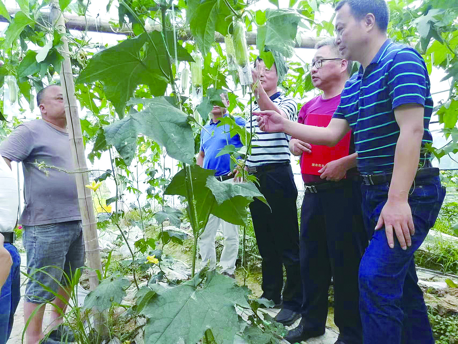 农技专家在指导丝瓜生产。 讲述人 供图