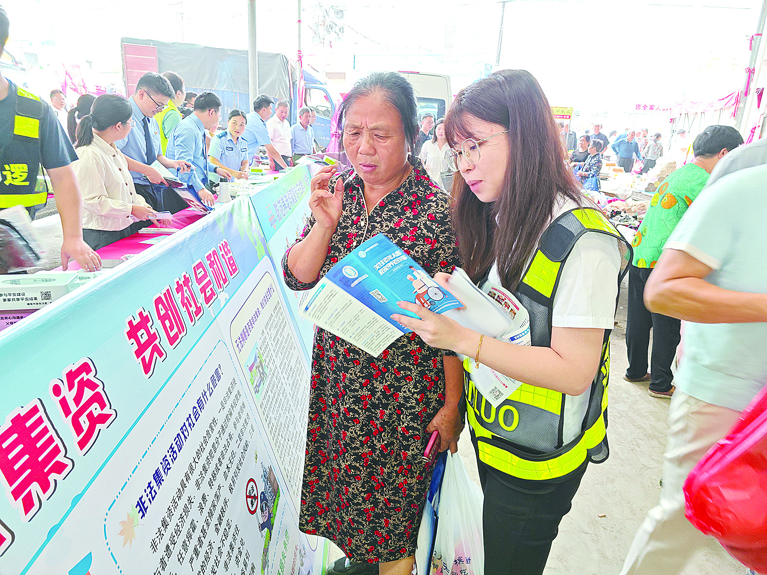 现场,打非电信诈骗、远离非法集资等宣传展板一字排开,宣传横幅醒目,“摊主”们耐心地向赶集的村民发放宣传资料,并讲解其中内容,包括有反诈、禁毒、信访工作条例等方面的法律法规,村民各取所需。