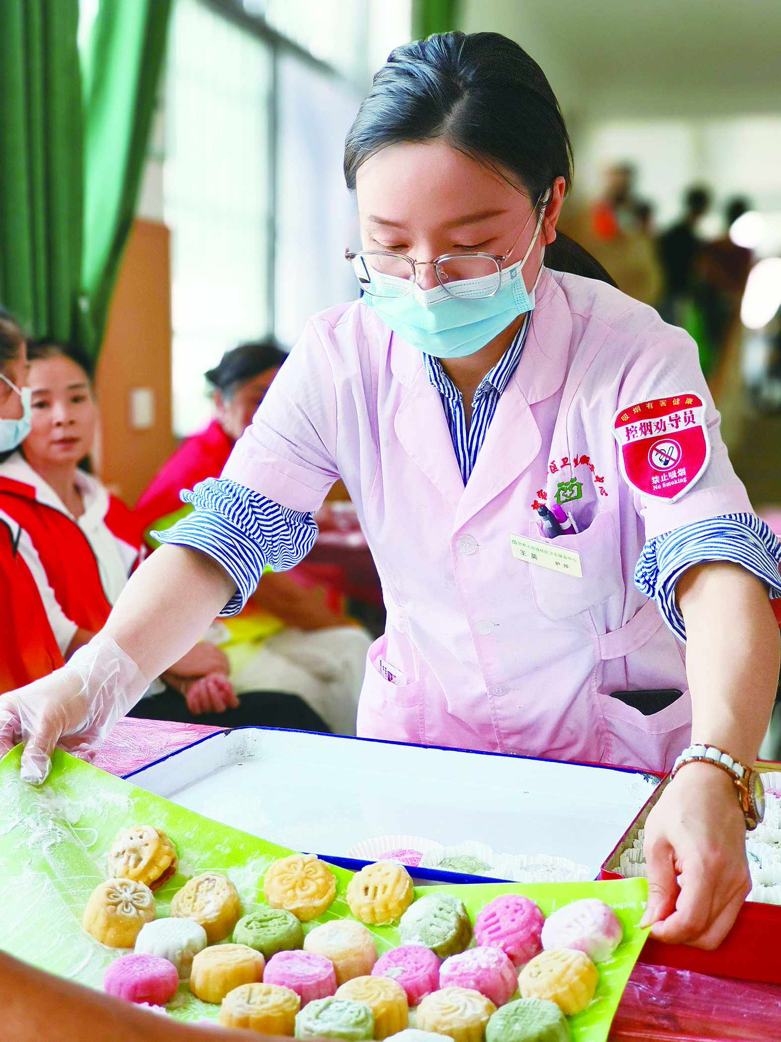 市文化馆悦和文化志愿者团队亲手制作含糖量低的月饼送给老人。 记者/廖智勇 摄