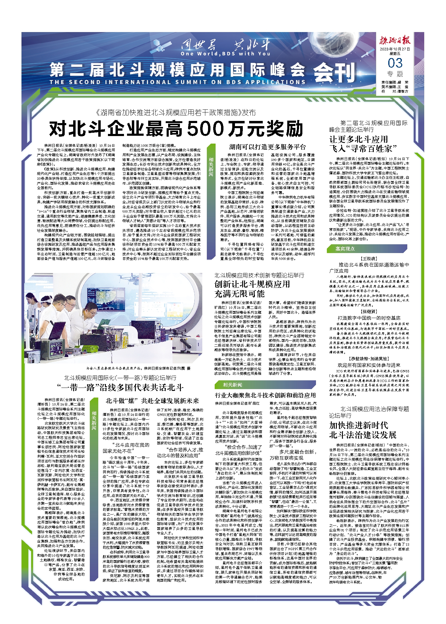 对北斗企业最高500万元奖励