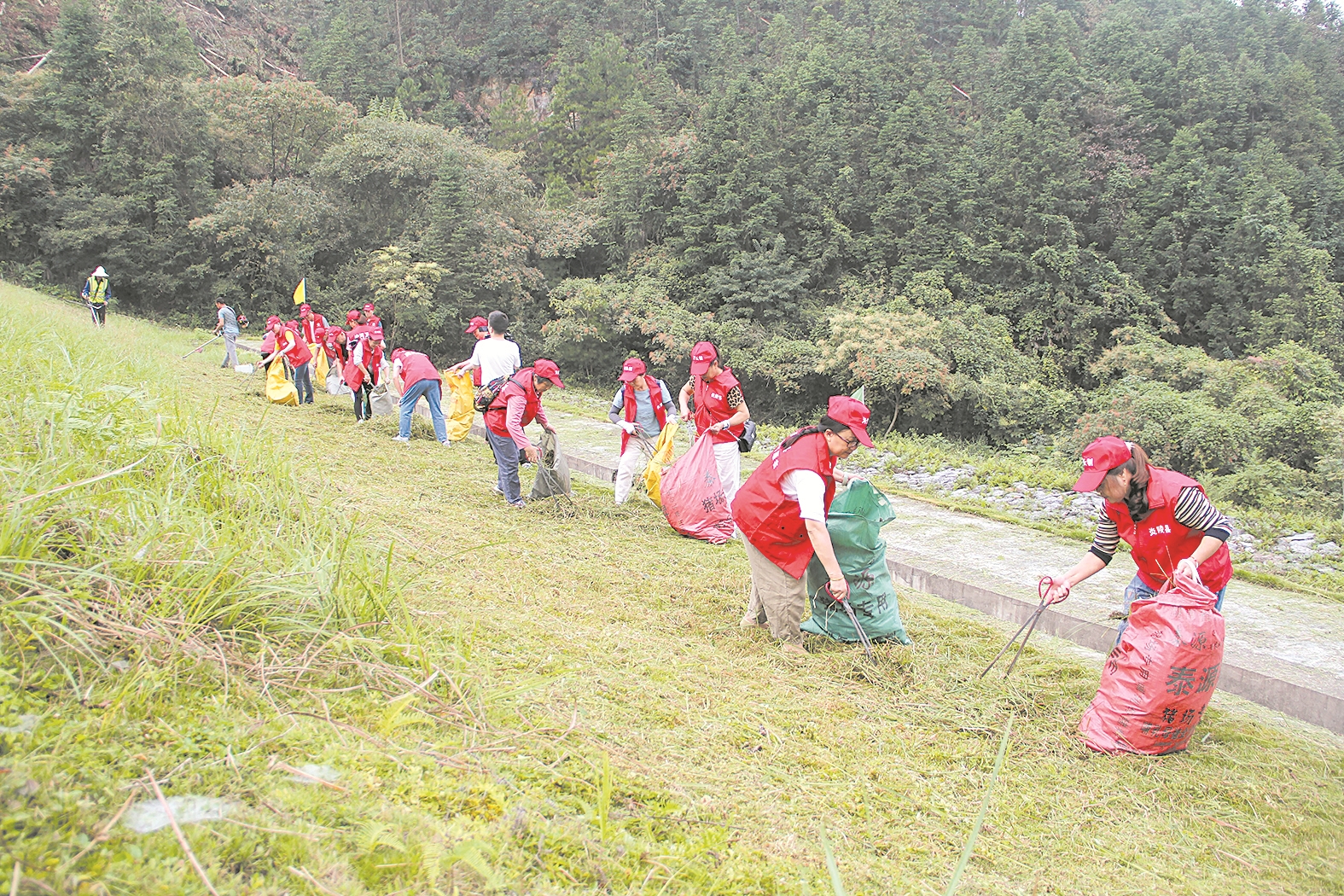 志愿者们发挥不怕脏、不怕苦、不怕累的精神,手持铁钳、铁锹等工具,沿库坝周边和草滩清捡垃圾、铲除杂草,清理下水道,还库坝以“水岸清、水面清、障碍清”面貌。
