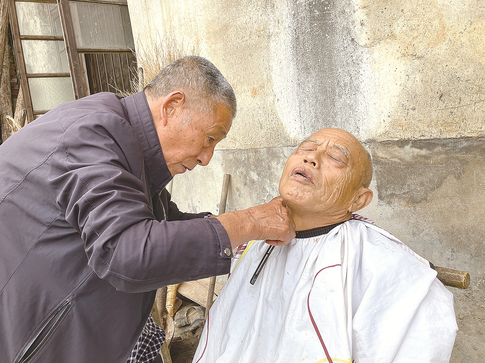 周洪喜正在为老人剃须。 记者/姚时美 摄