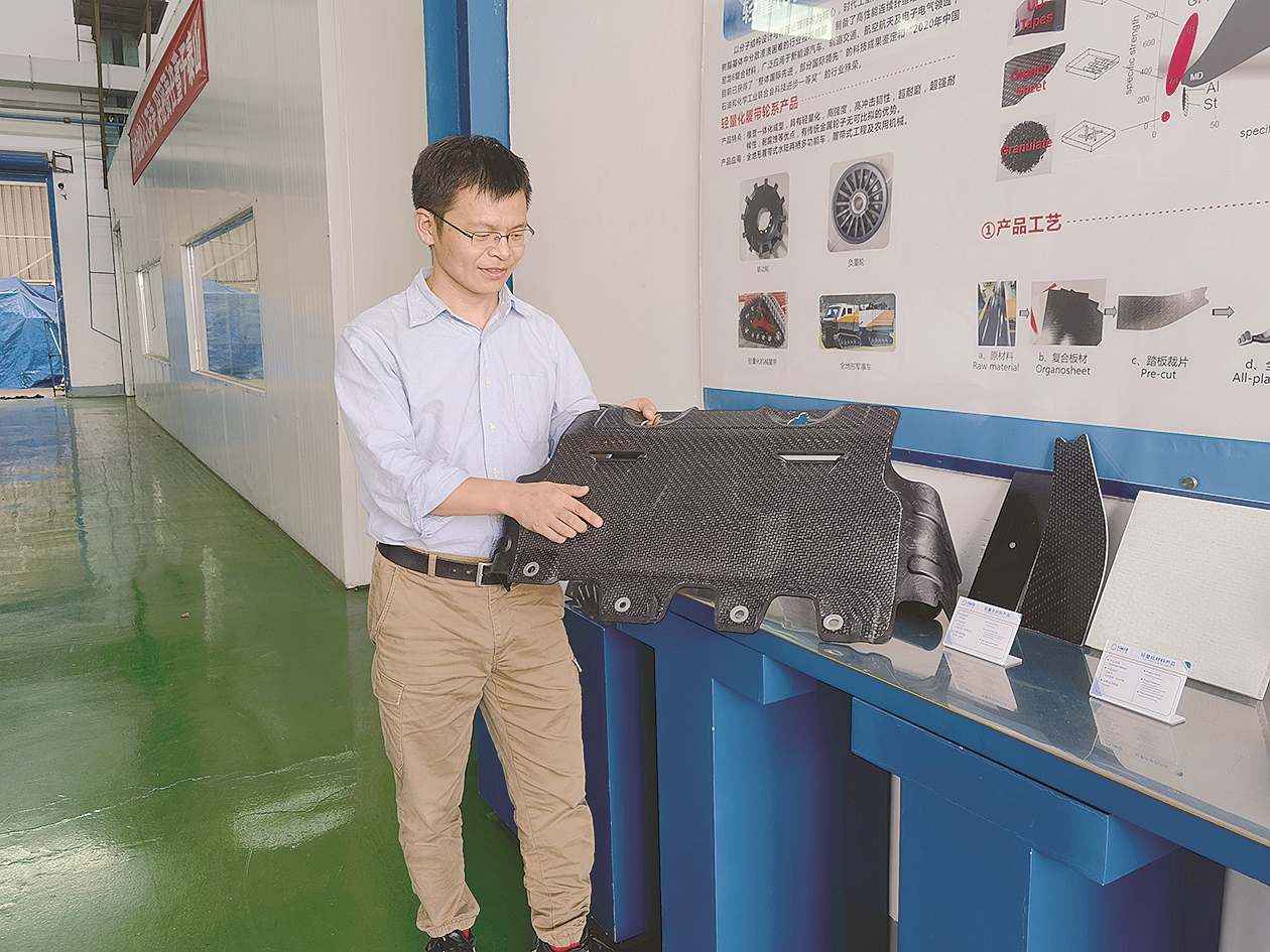 这个底护板为何备受青睐?李声耀介绍,通俗来说产品实现了“以塑代钢”,但新产品的耐磨性与冲击性能更好,较钢板的重量减轻50%,能有效提高续航,达到减碳的目的。更重要的是,新产品实现可回收利用。