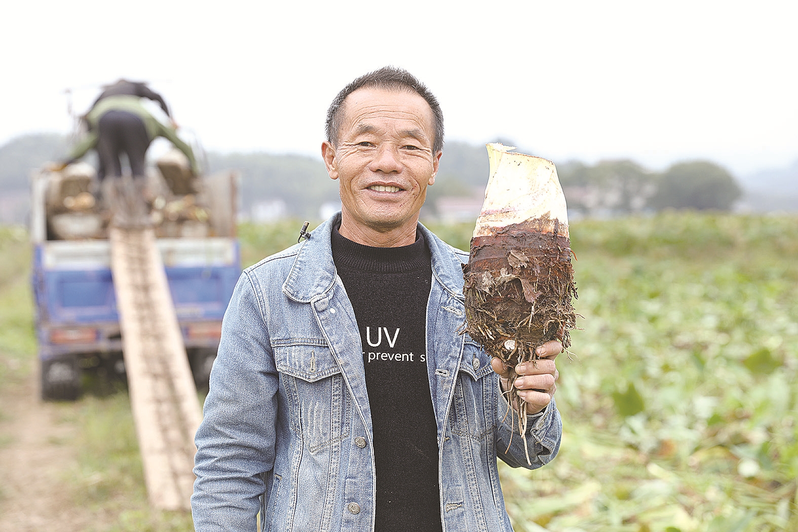 村民向记者展示香芋。