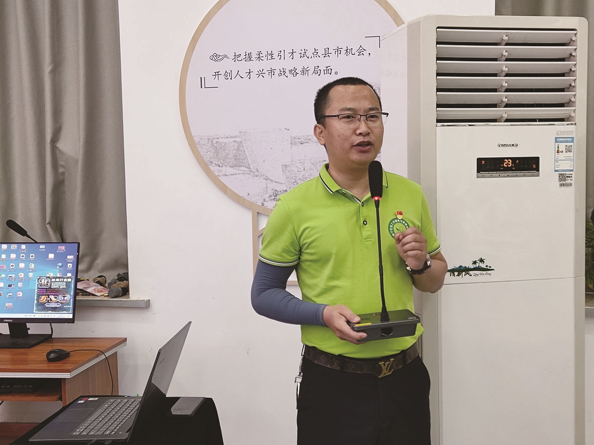 今年5月,苑芳乐在醴陵市职业教育学院主持醴陵市社会工作者职业水平考试考前培训。 受访者供图