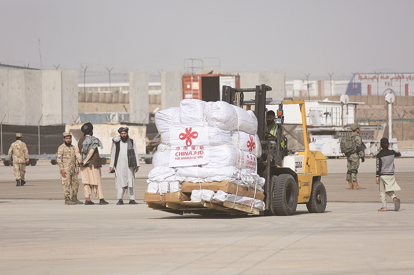 本月7日,阿富汗西北部发生两次6.2级地震,超过2400人遇难,上千座房屋被毁。11日,阿西北部再次发生6.3级地震。地震发生后,中国政府第一时间决定向阿富汗提供紧急人道主义援助。根据阿方需求,中方计划向阿方提供帐篷、折叠床、厚毛毯、棉被等物资。首批抵阿的救灾物资主要是帐篷和折叠床。图为15日中国政府援助阿富汗第一批抗震救灾物资运抵阿西北部赫拉特省赫拉特市。