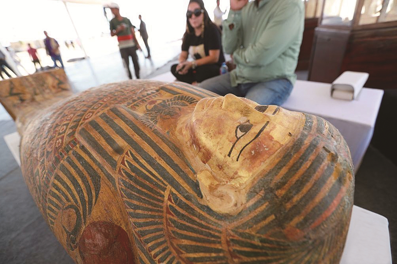 10月15日在埃及明亚省考古现场拍摄的彩绘木乃伊棺椁。 新华社记者 隋先凯 摄
