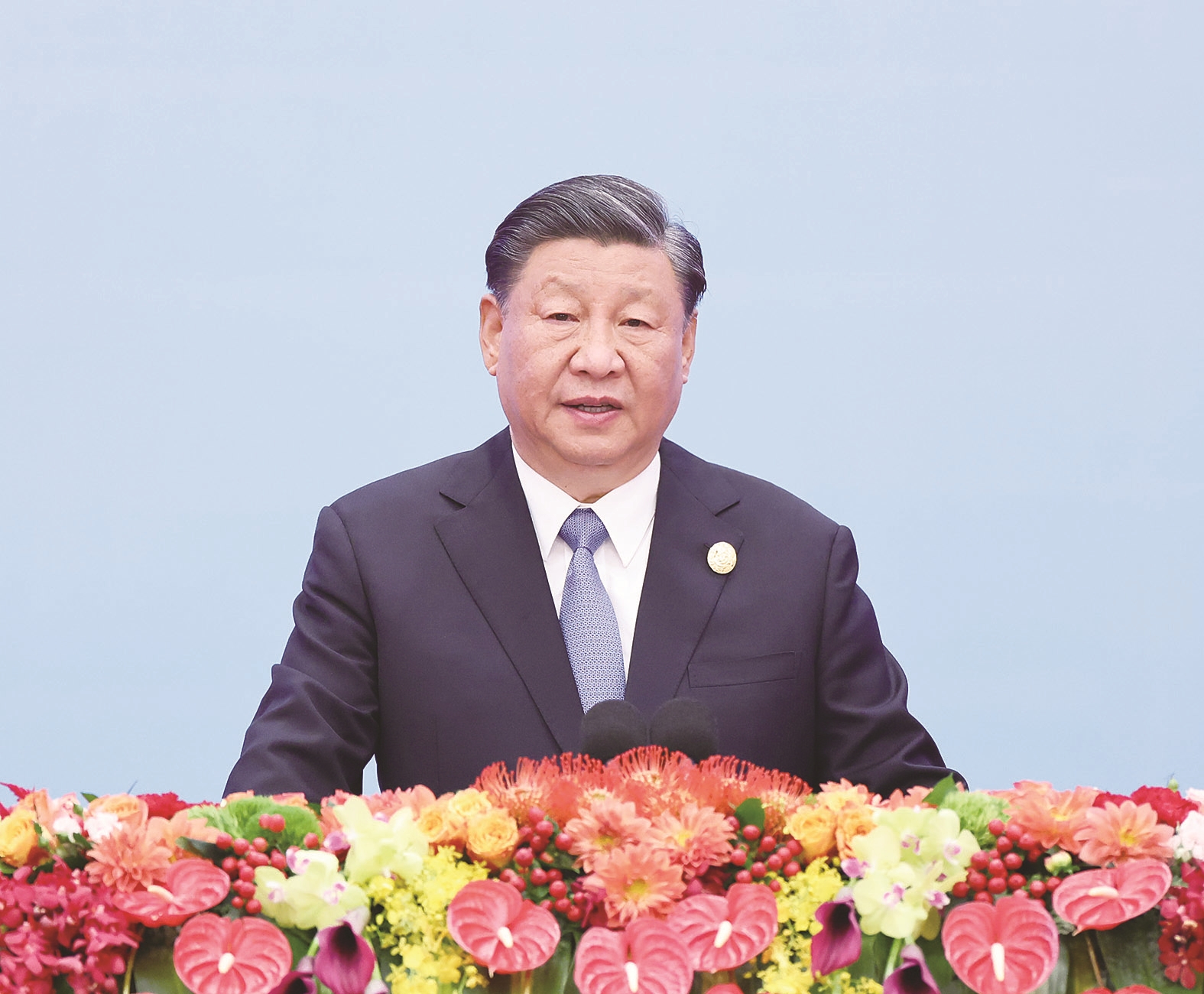 10月18日上午,国家主席习近平在北京人民大会堂出席第三届“一带一路”国际合作高峰论坛开幕式,并发表题为《建设开放包容、互联互通、共同发展的世界》的主旨演讲。 新华社记者/王晔 摄