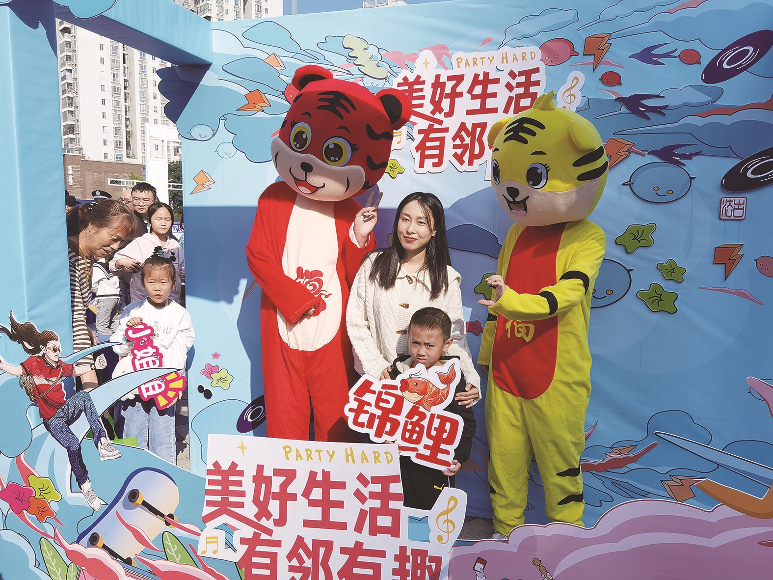 居民在“最美全家福”拍照打卡点留下幸福瞬间。记者/邹怡敏 摄