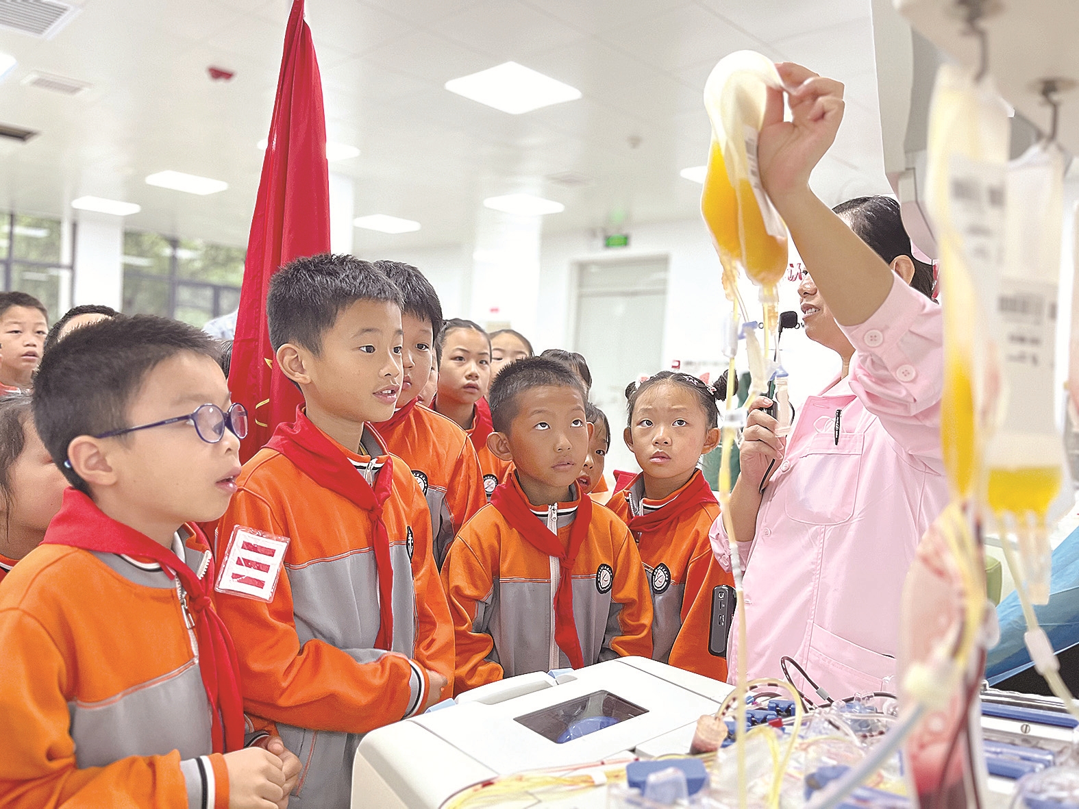 “血液的颜色有哪些?”“血型分哪几种?”“什么是成分血?”……参观时,孩子们对各类采供血设备、血液知识充满好奇,连连发问。市中心血站相关负责人表示,无偿献血是公益性事业,应从娃娃抓起,让孩子们真正了解生命的意义。