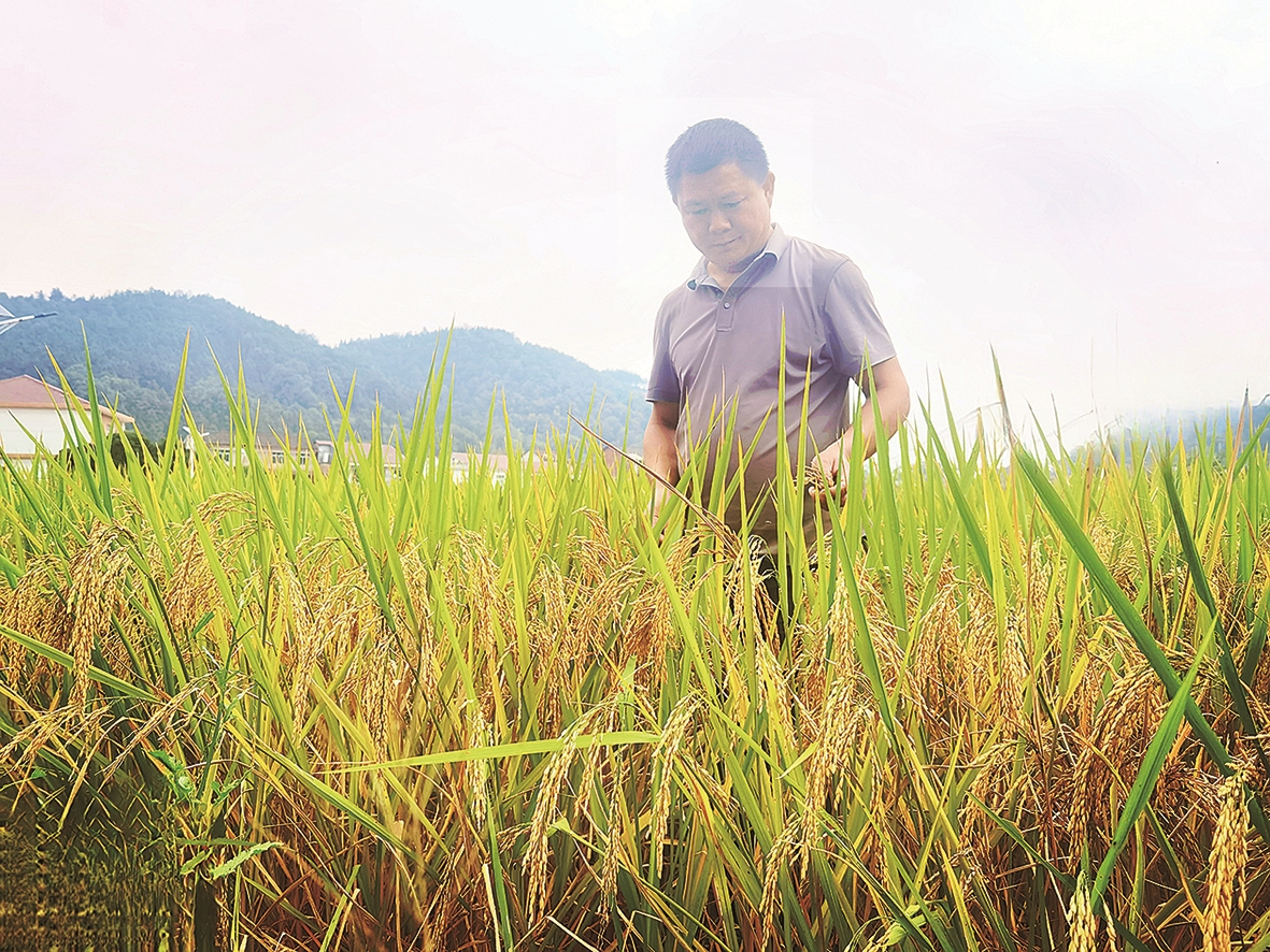 易东明查看水稻长势。 通讯员 供图