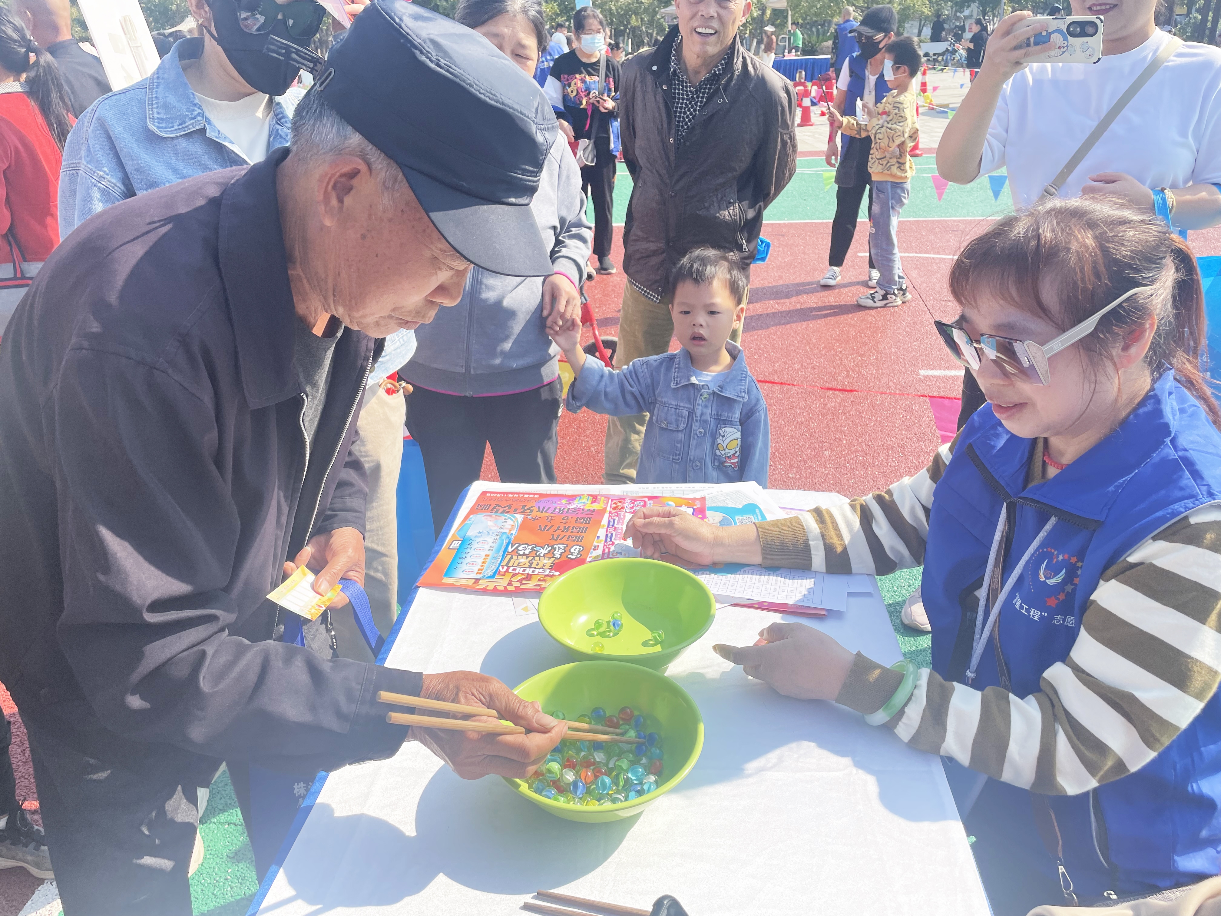 10月22日,“情暖夕阳红·爱在清水塘”活动在清水塘广场举行,现场不但有舞蹈、合唱、独唱等精彩纷呈的文艺表演供大家欣赏;台下还有义诊、义剪、疼痛理疗、膳食指导、陪聊谈心、情绪疏导、共享集市、反诈宣传、法律咨询等便民服务,以及套圈、投壶、蒙眼敲锣、定点投篮、夹玻璃珠、吹乒乓球等趣味游戏,吸引了众多居民扶老携幼,踊跃参与;“家庭赛”“楼栋赛”“小区赛”等不同类别的趣味拔河比赛,更是让活动高潮迭起。