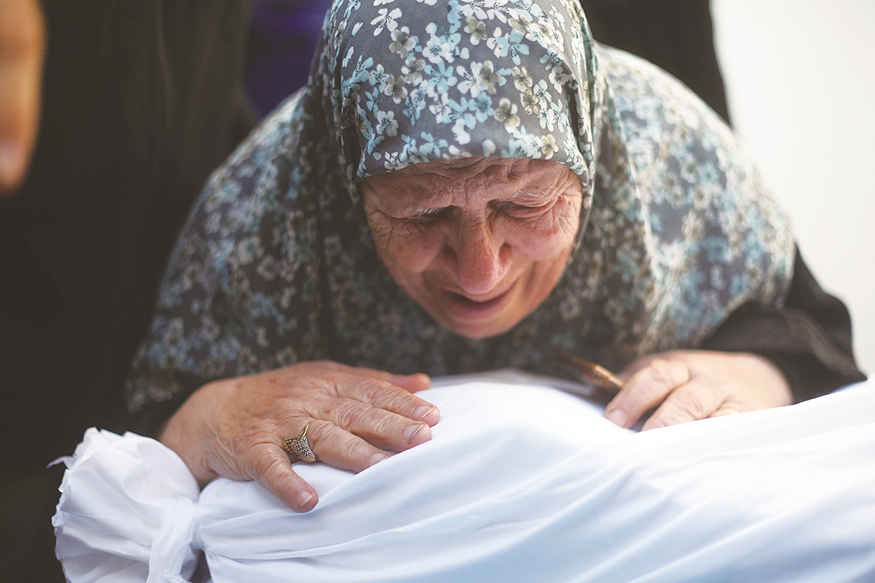 10月21日,在加沙地带南部地区,一名妇女为逝去的亲友哭泣。 新华社发(哈立德·奥马尔 摄)