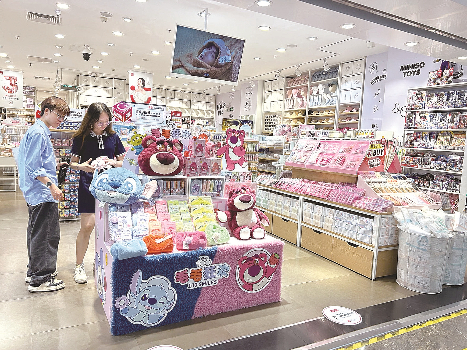 在不远处的名创优品店内,这家生活好物集合店,让年轻人总忍不住想进去逛一逛。