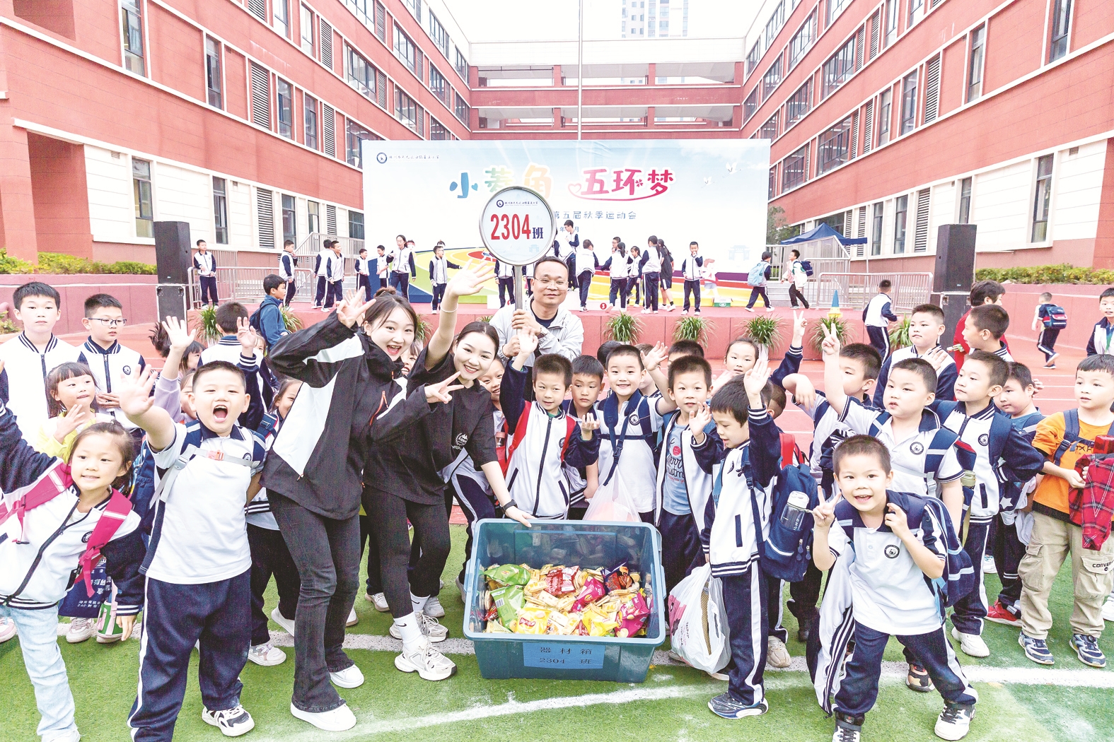 株洲日报讯(全媒体记者/孙晓静 通讯员/陈力涵) 如果给你一分钟的时间,爱吃的零食随便拿,你会怎么办?近日,在天元区白鹤菱溪小学“小菱角 五环梦”第五届秋季运动会上,“为爱奔跑一分钟”零食抢夺战受到全体师生的追捧。