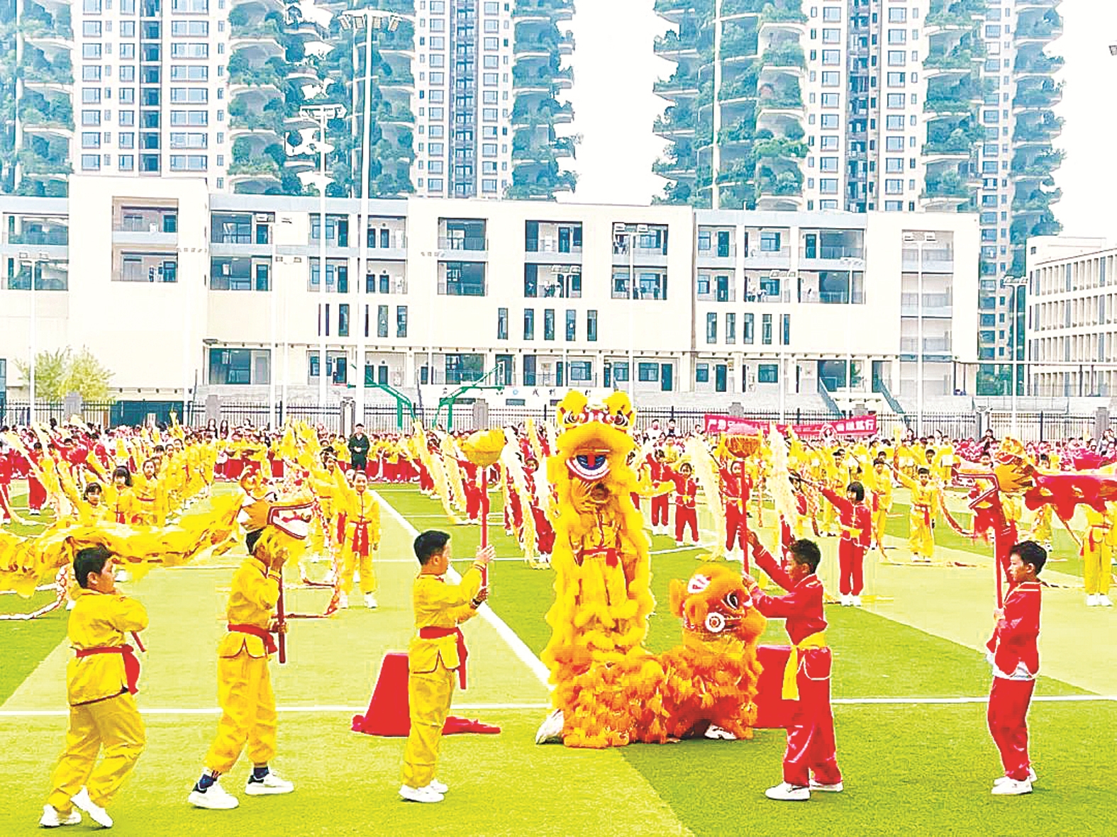 该校学生表演舞龙舞狮。通讯员供图
