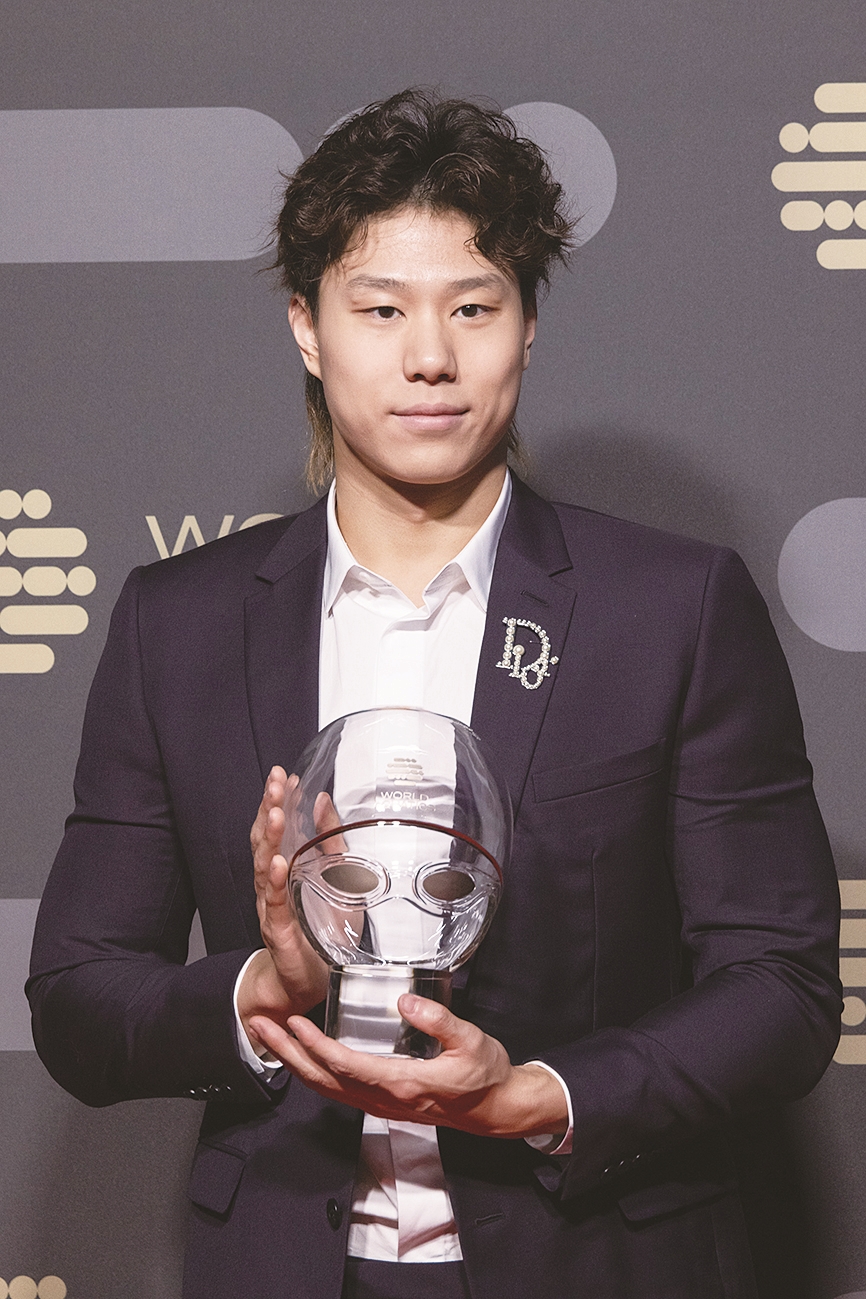 24岁的覃海洋在7月举行的福冈游泳世锦赛上一举夺得男子50、100和200米蛙泳3枚金牌,成为历史上第一位在同届世锦赛上包揽蛙泳3个项目金牌的运动员。他还打破200米蛙泳世界纪录,并以历史第二好成绩夺得100米蛙泳冠军。世锦赛后,他在成都大运会上摘得5枚金牌,在杭州亚运会获评MVP(最有价值运动员)。在22日晚结束的游泳世界杯上,他以3站比赛包揽9枚金牌的佳绩成为世界杯年度总冠军。