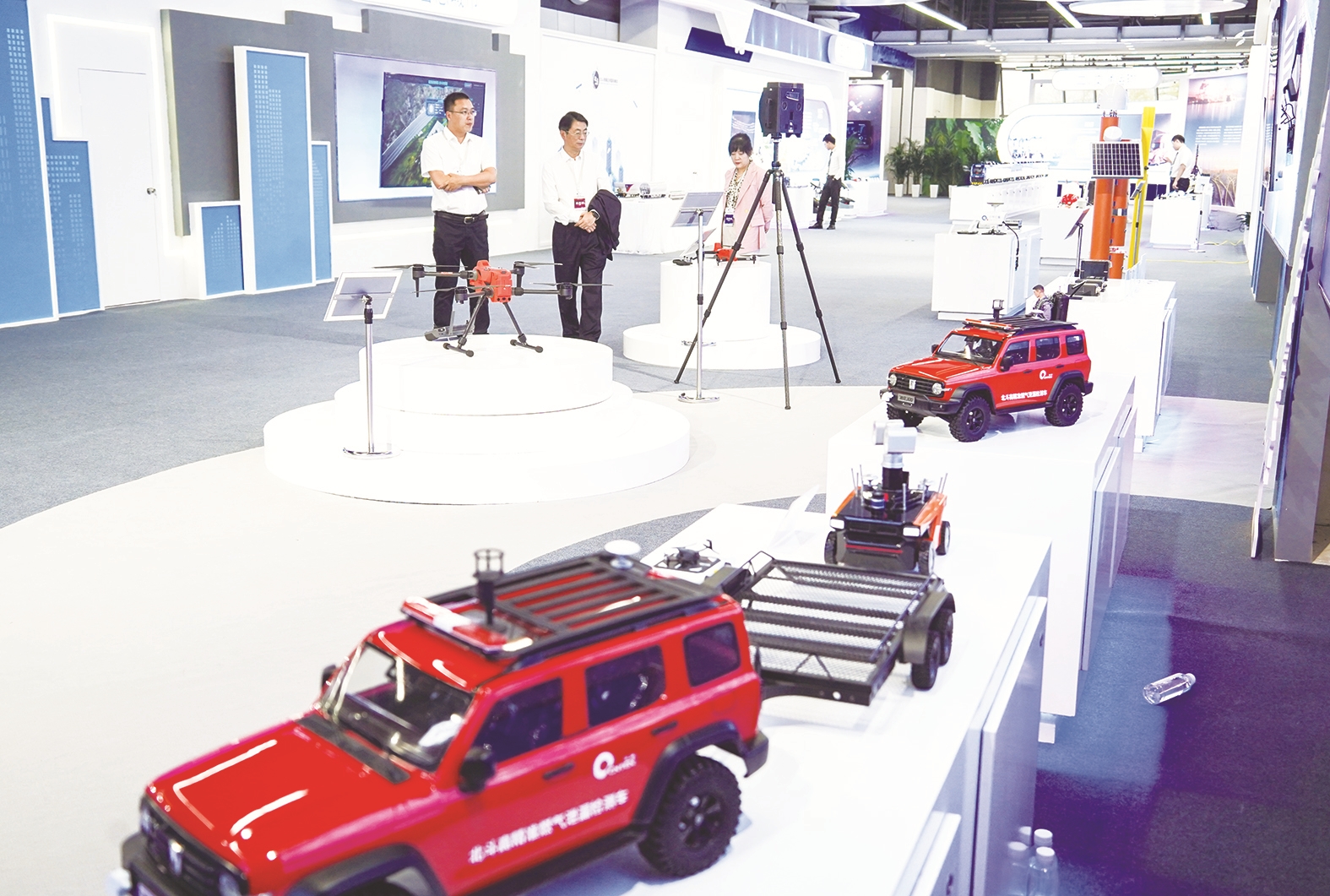 第二届北斗规模应用国际峰会展区,观众在参观北斗各类应用产品。株洲日报全媒体记者/刘震 摄