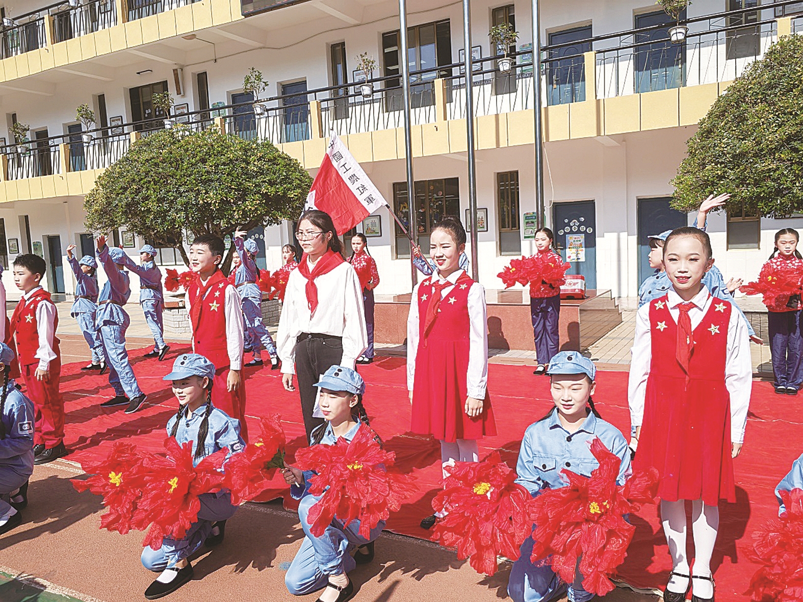 同学们自编自演“红色经典”剧目,开展爱国主义教育。 通讯员供图
