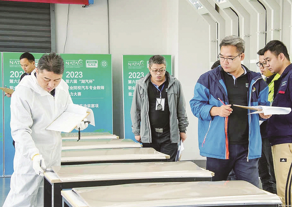 考官检验汽车涂装质量。 受访单位供图