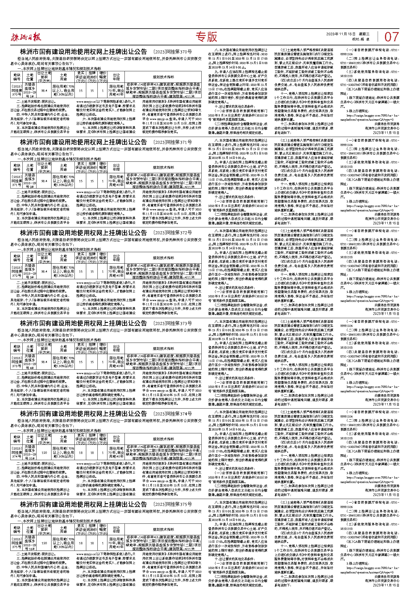 株洲市国有建设用地使用权网上挂牌出让公告 〔2023〕网挂第371号