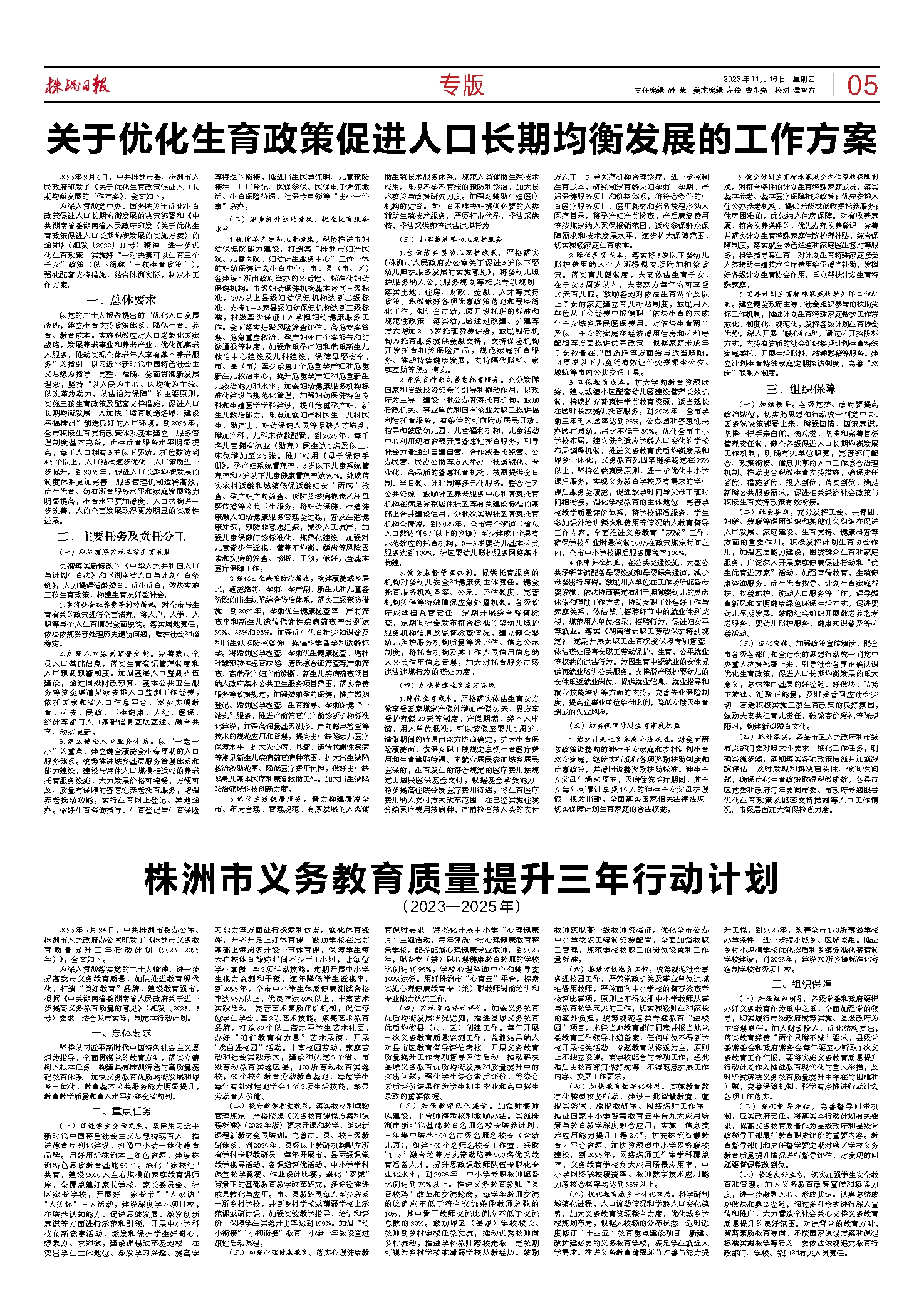 2023年11月16日《株洲日报》