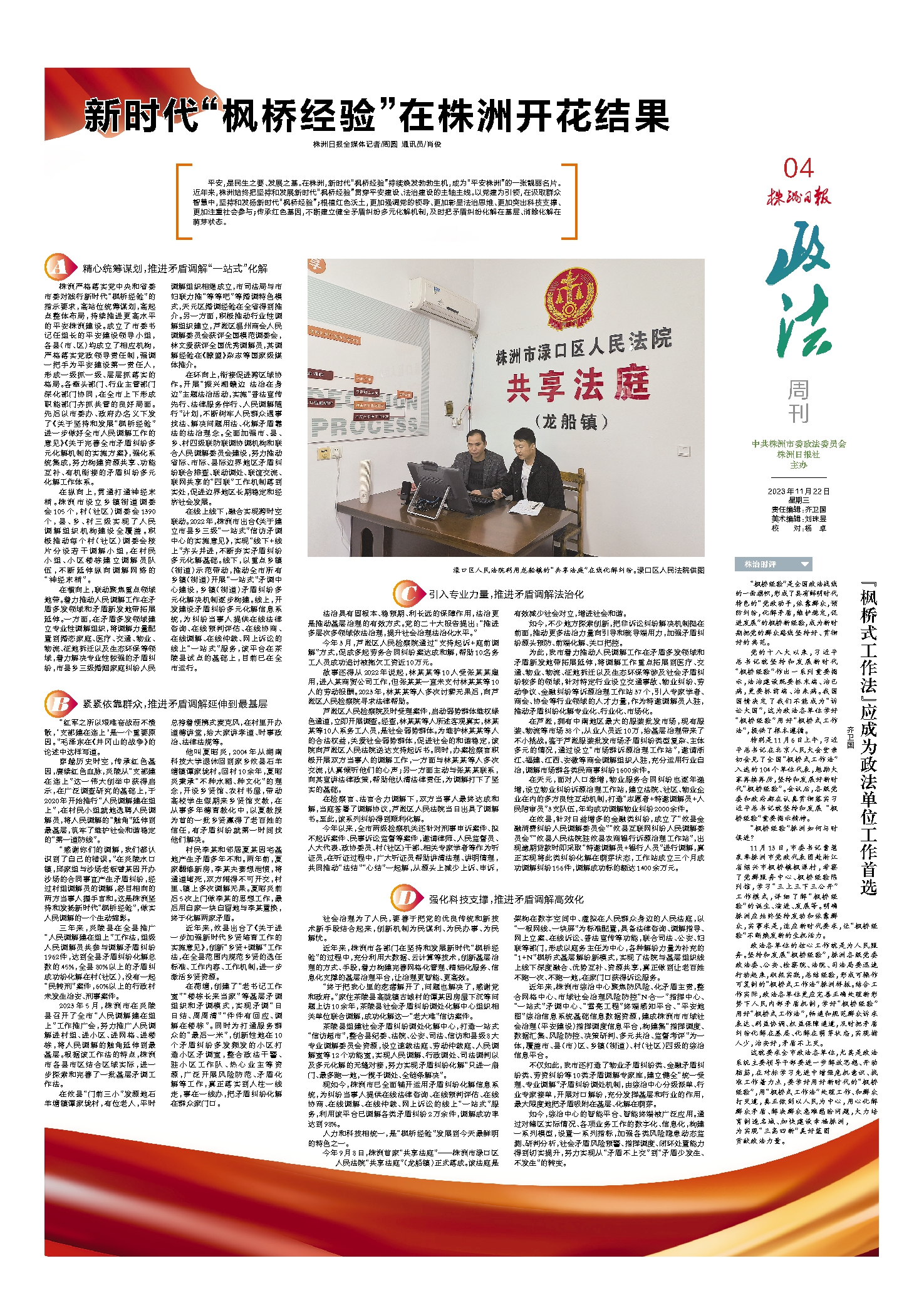 新时代“枫桥经验”在株洲开花结果