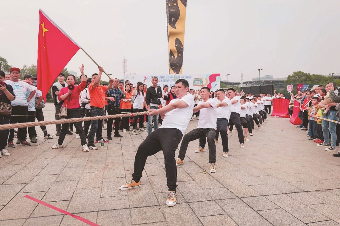 省第四届社区运动会株洲选拔赛拔河比赛现场。 通讯员供图