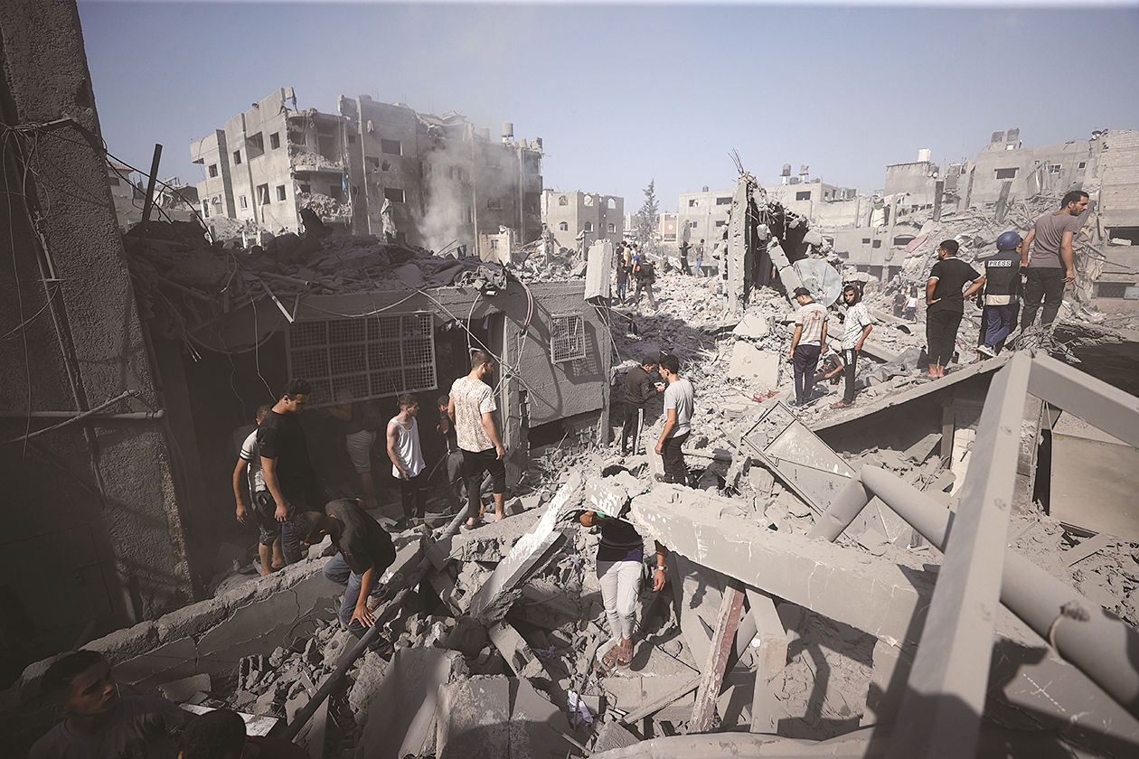 11月2日,在加沙地带中部的布赖杰难民营,人们在以色列空袭后展开营救工作。 新华社发(亚西尔·库迪 摄)