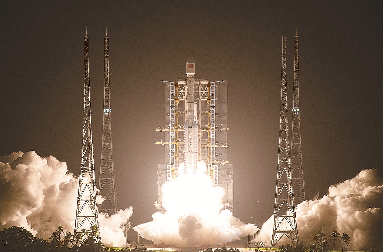 11月3日22时54分,我国在文昌航天发射场使用长征七号改运载火箭,成功将通信技术试验卫星十号发射升空,卫星顺利进入预定轨道,发射任务获得圆满成功。 新华社记者 樊雨晴 摄