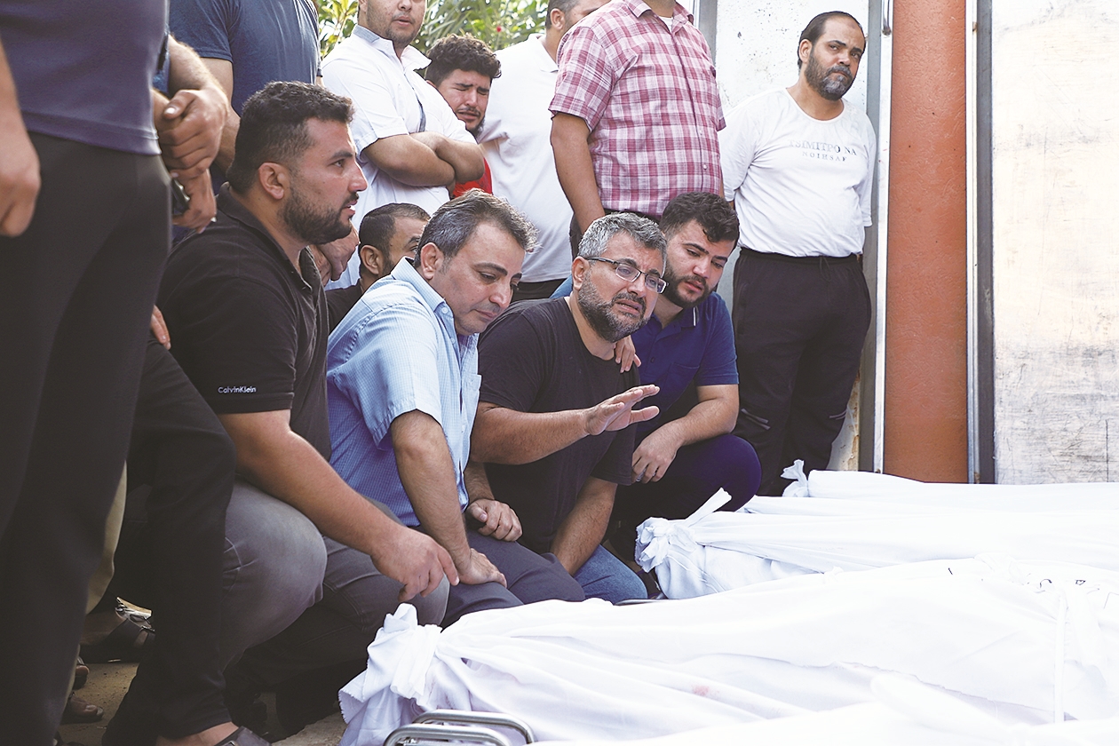 11月3日,在加沙地带南部,人们悼念在冲突中遇难的亲友。死者中包括一名电视台记者和他的家人。 新华社发(里泽克·阿卜杜勒贾瓦德 摄)