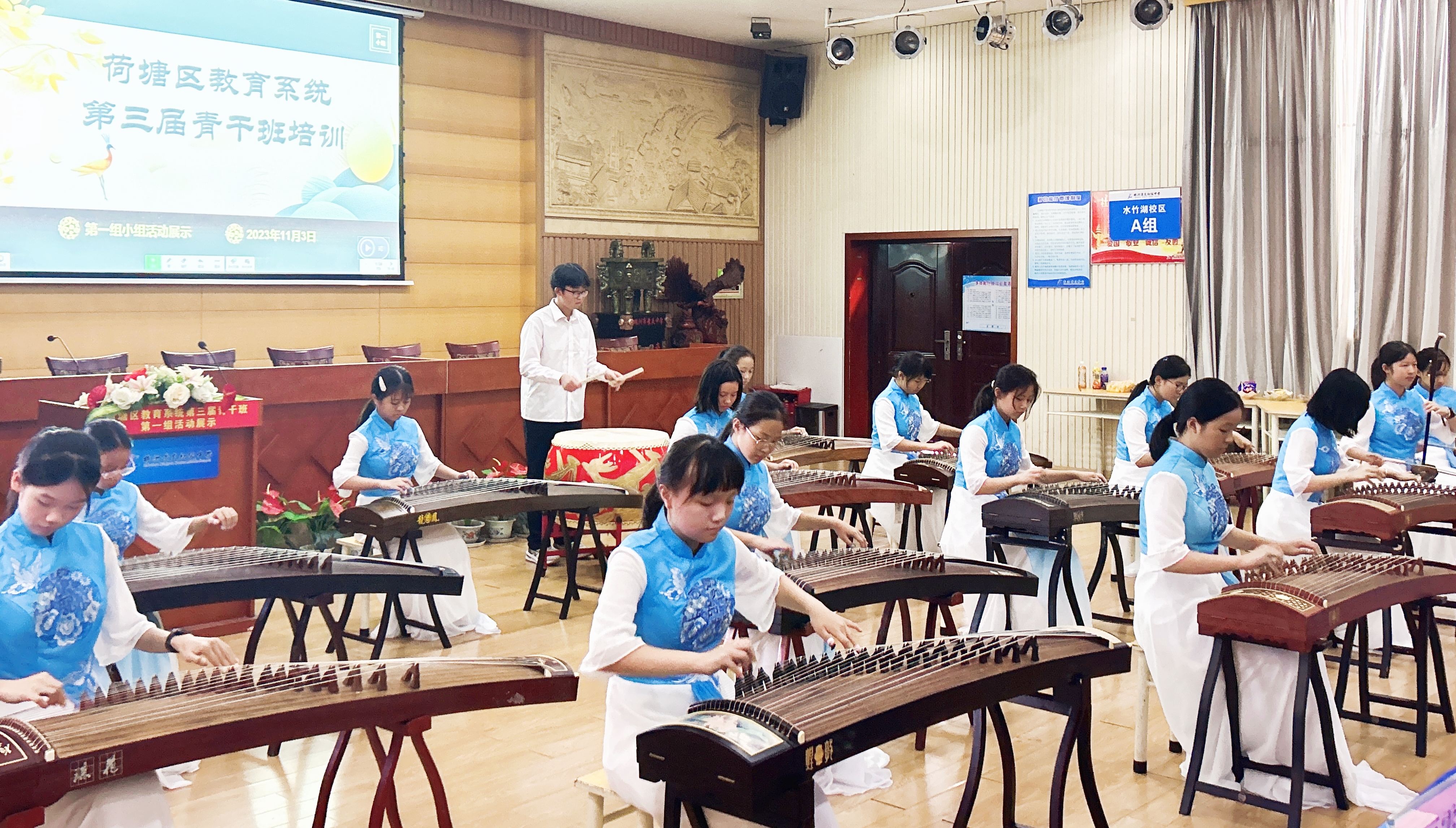 株洲日报讯(全媒体记者/戴凛 通讯员/王芳芳) “双减”政策下,如何在课后服务的沃土上绽放五育并举之花?11月3日,荷塘教育系统青干班第一小组主题展示活动在景炎初级中学多功能厅举行,一场精彩的古筝表演惊艳全场。