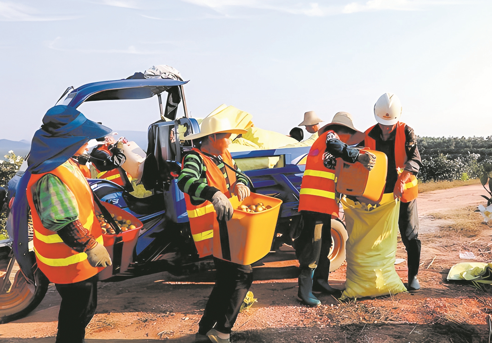 ▲村民们在采摘油茶果。
