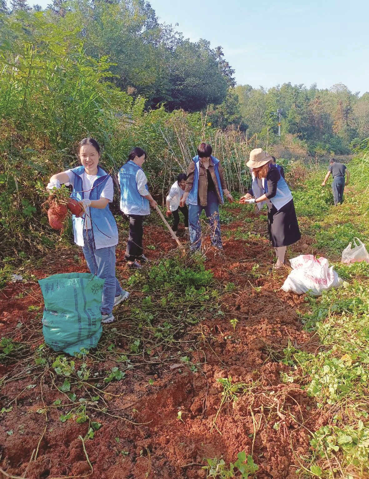 雷打石镇砖桥村的党员和青年志愿者,正在帮低保户收红薯。 记者/杨如 摄