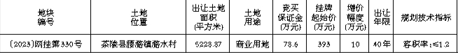 株洲市国有建设用地使用权网上挂牌出让公告 〔2023〕网挂第330号