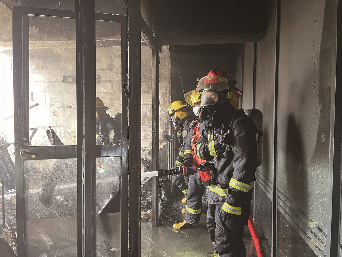 消防队员赶至现场时,火势已经迅速蔓延,烈焰透过窗户向外迸射。罗芳志立即带领队员,顶着高温、冒着明火浓烟,前往火海搜救被困人员。